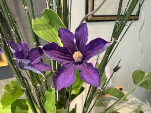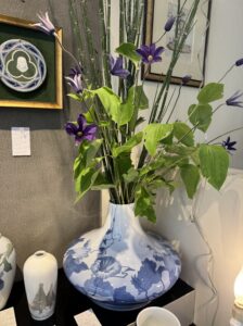 クレマチスを生けている鉢の柄は朝顔ですが、今の時期に朝顔は無いのでクレマチスを飾りました。