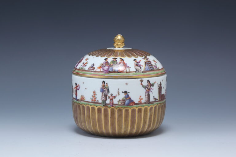 白金長四角形シノワズリー人物図蓋付シュガーポット