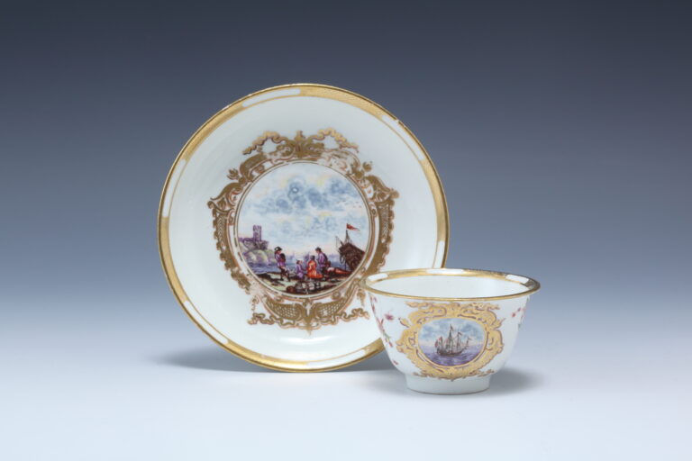 金彩カルトゥーシュ 港湾風景図ティーカップ&ソーサー