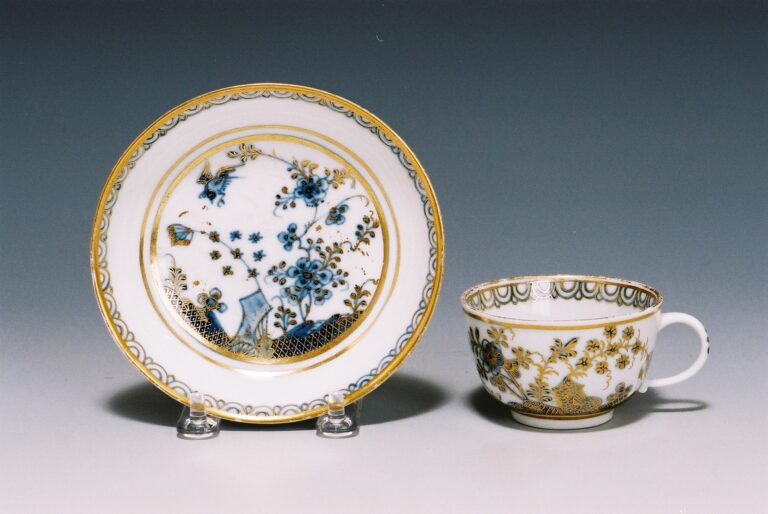 ブルー地金彩 金のフェザー文カップ&ソーサー