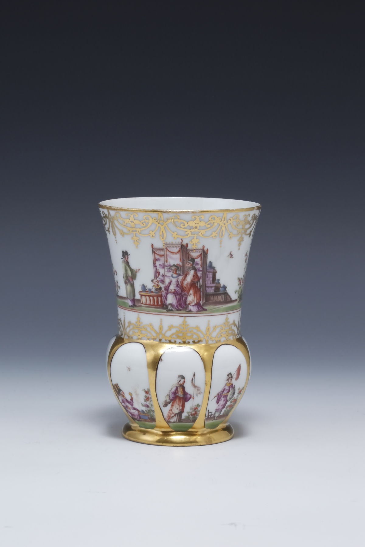 Meissen (マイセン) 1880-1900年 金彩女神と天使図チョコレートカップ&ソーサー