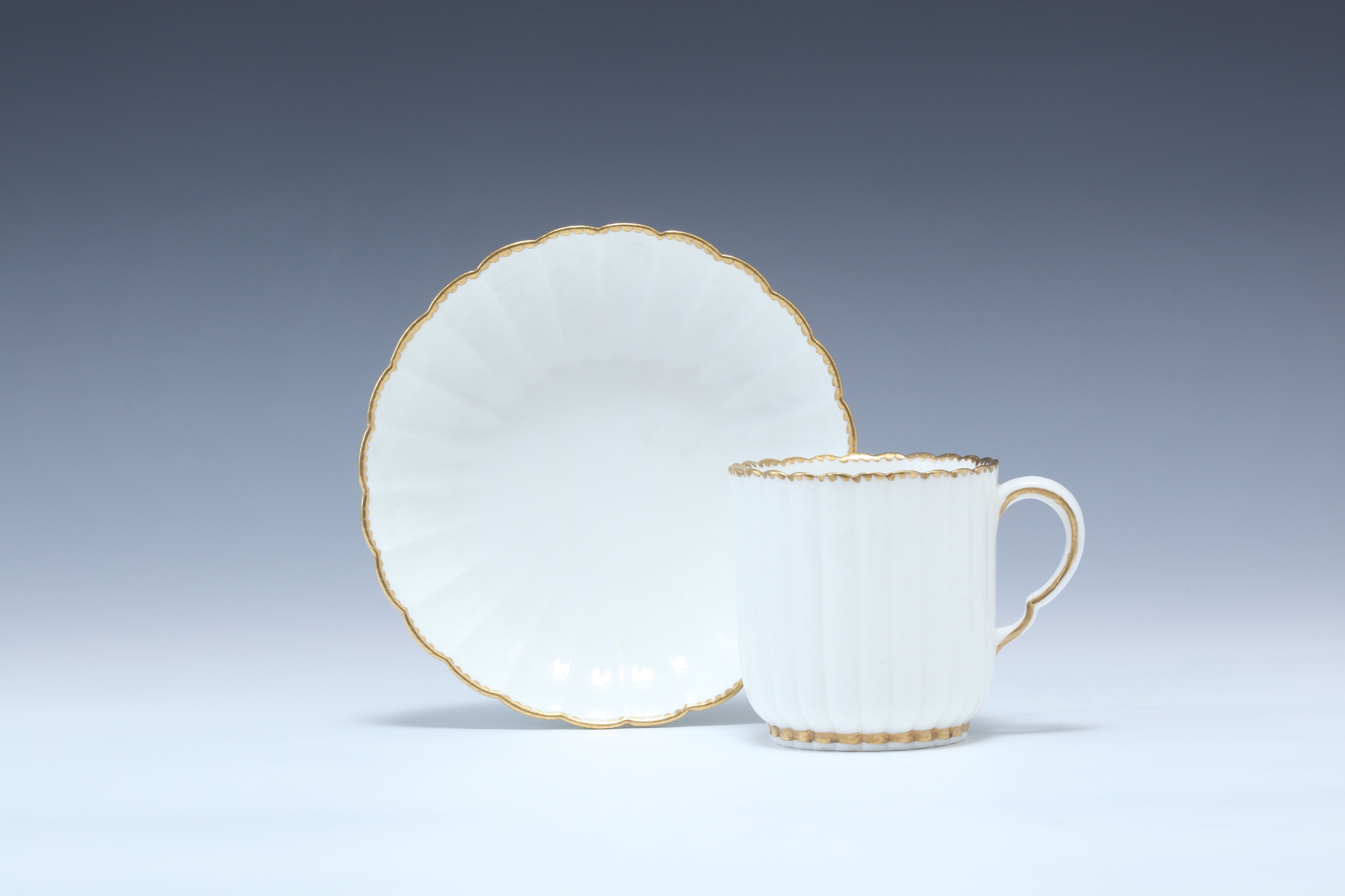 ブルー地金彩 金のフェザー文カップ&ソーサー
