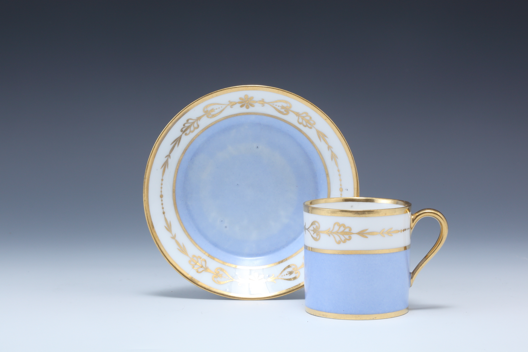ブルーヌーボー地 金彩パルメットとマーガレット文 カップ&ソーサー