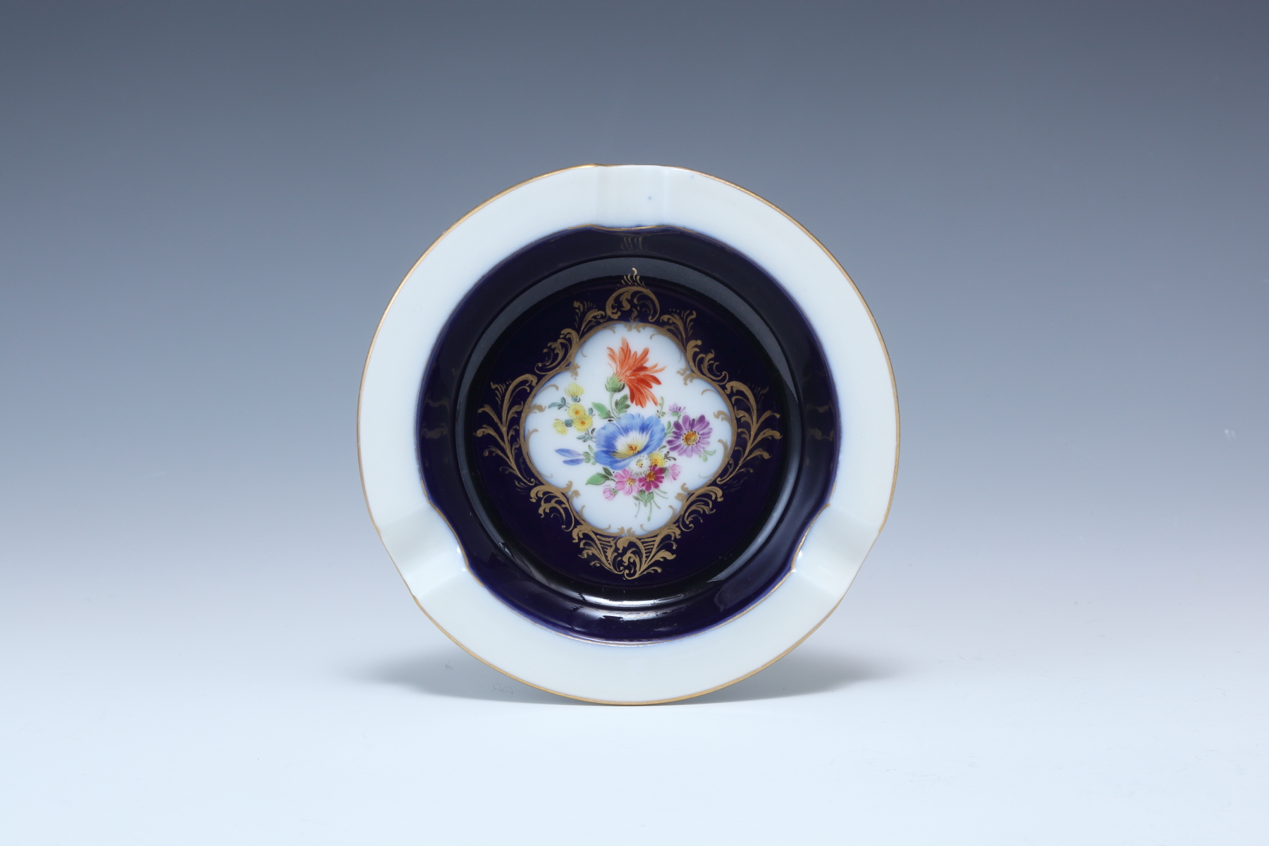 Meissen (マイセン) 1890-1900 ルリ地プラチナと金彩植物文蓋もの
