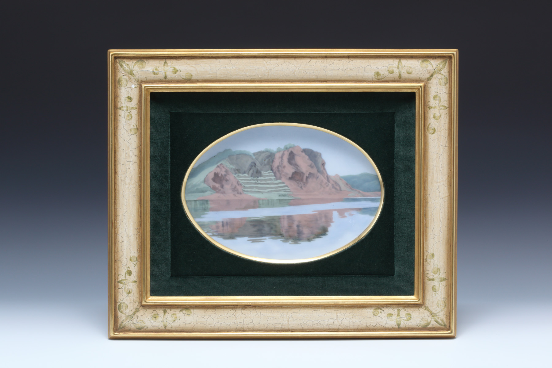 ルリ地金彩透かし彫りボーダー 名画図 飾皿額