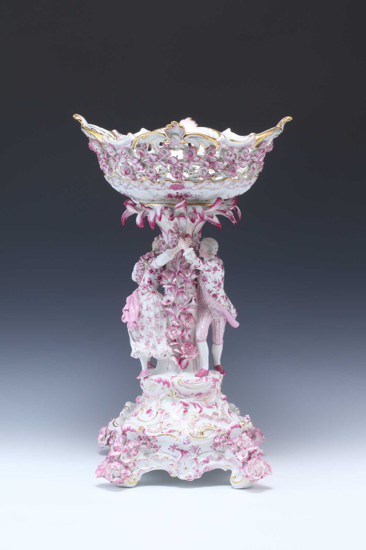 ピンクインドの花の恋人像センターピース 台付