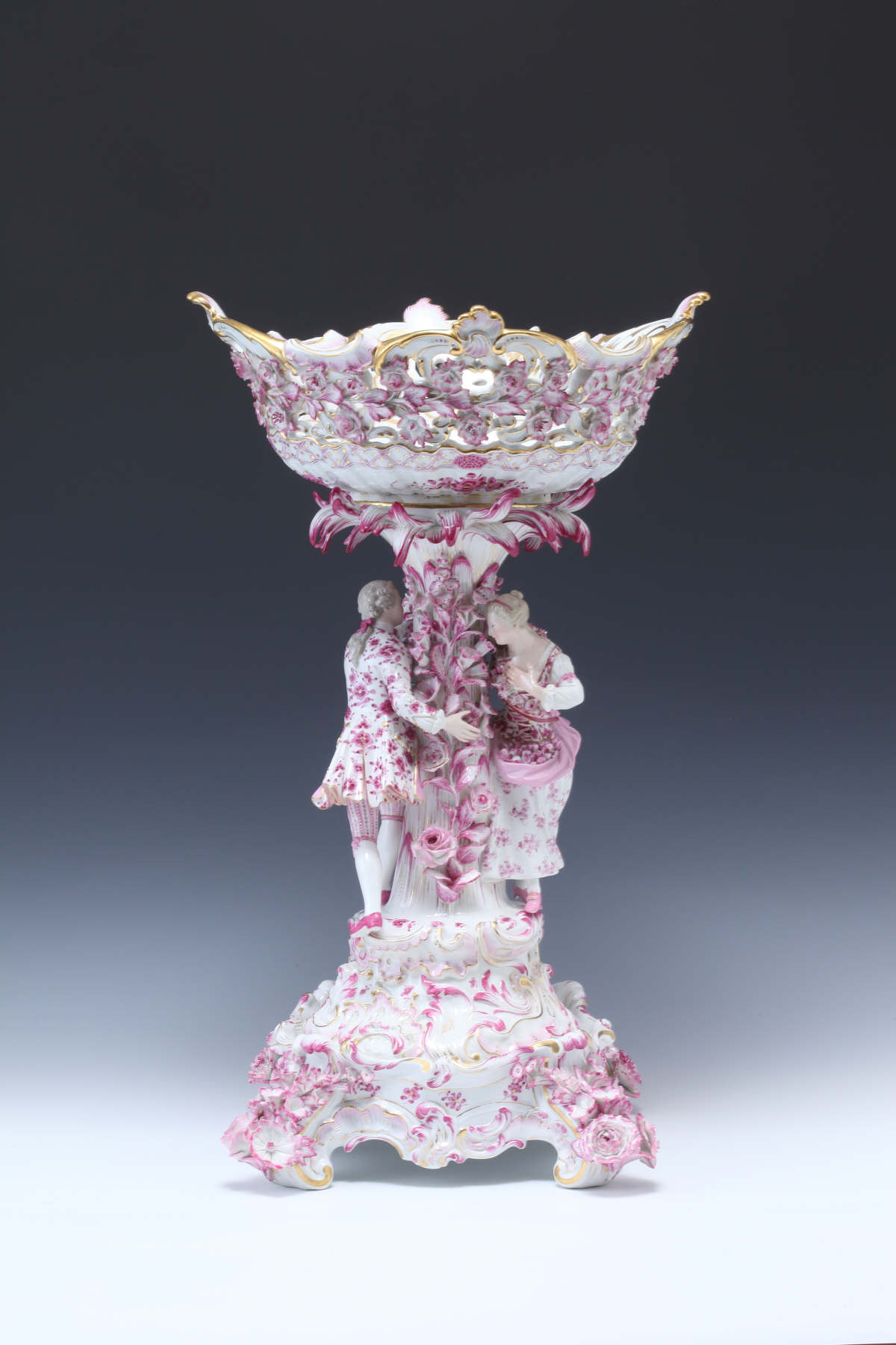 ピンクインドの花の恋人像センターピース 台付