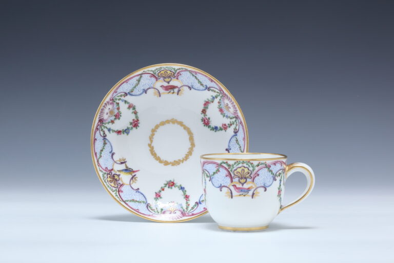 ブルーヌーボー地 金彩パルメットとマーガレット文 カップ&ソーサー