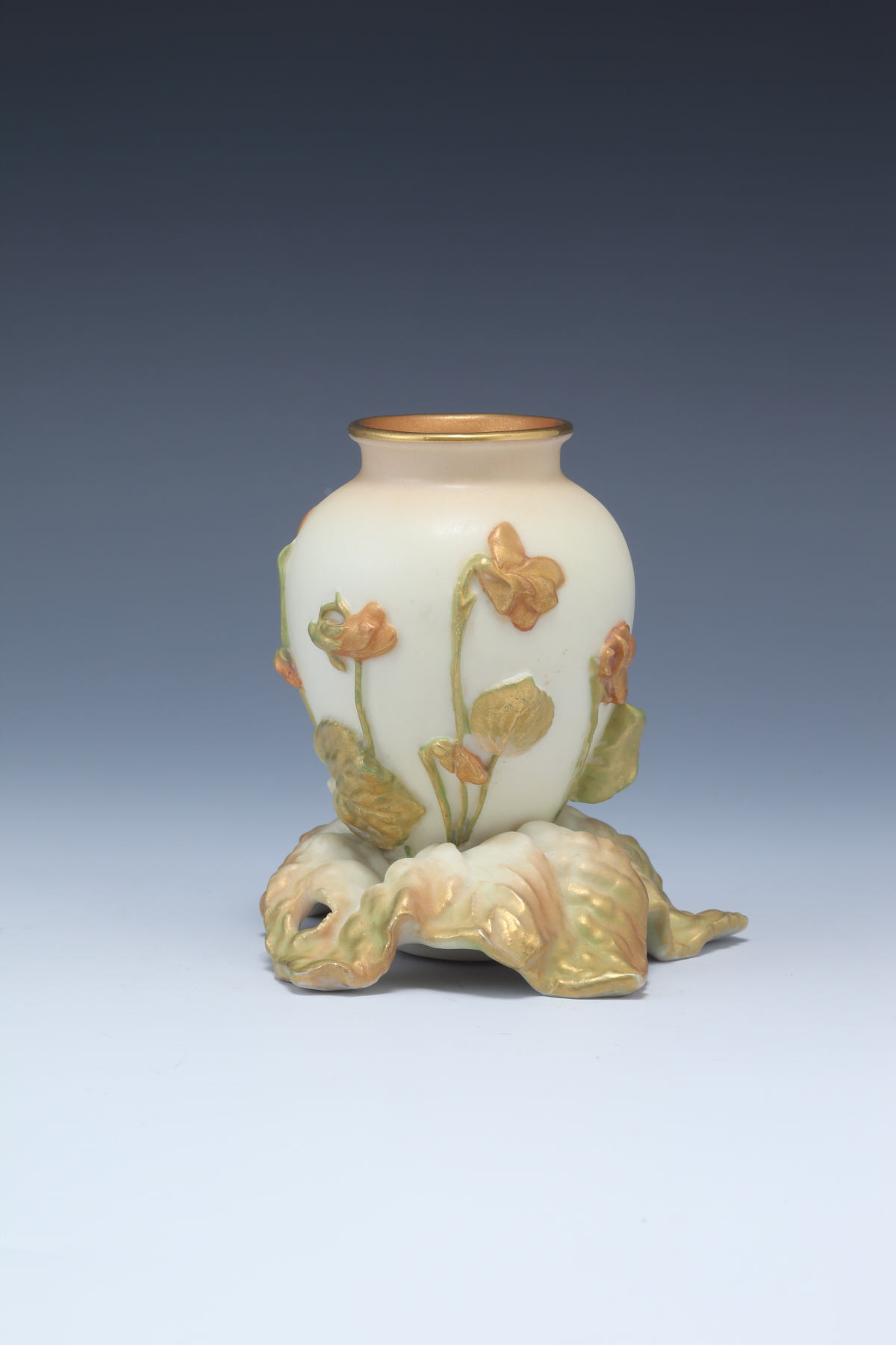 ブラッシュアイボリー 浮彫りすみれ図 ポージー花瓶