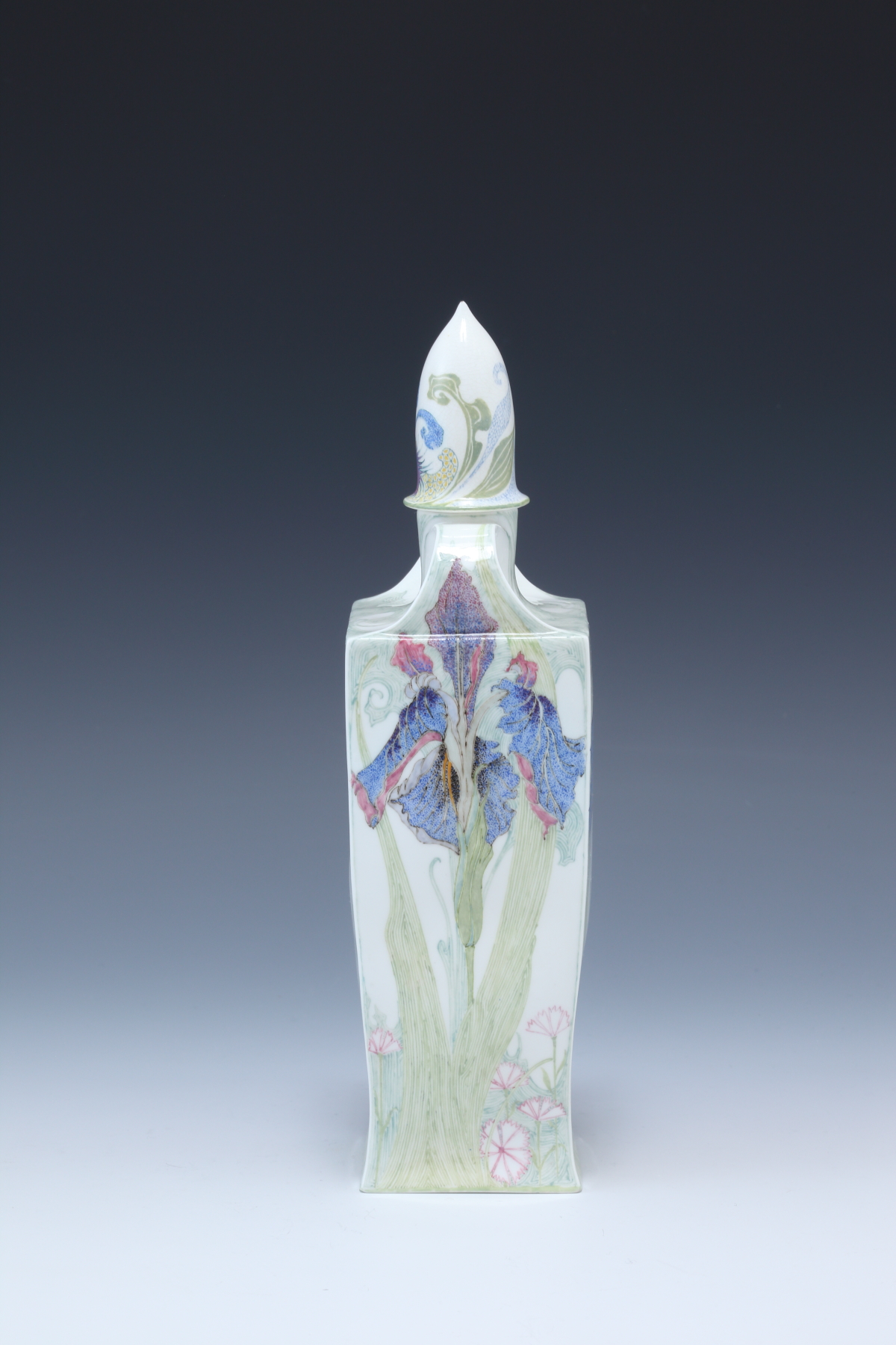 すみれ図 ひょうたん型 シルバーストッパー化粧水ボトル対