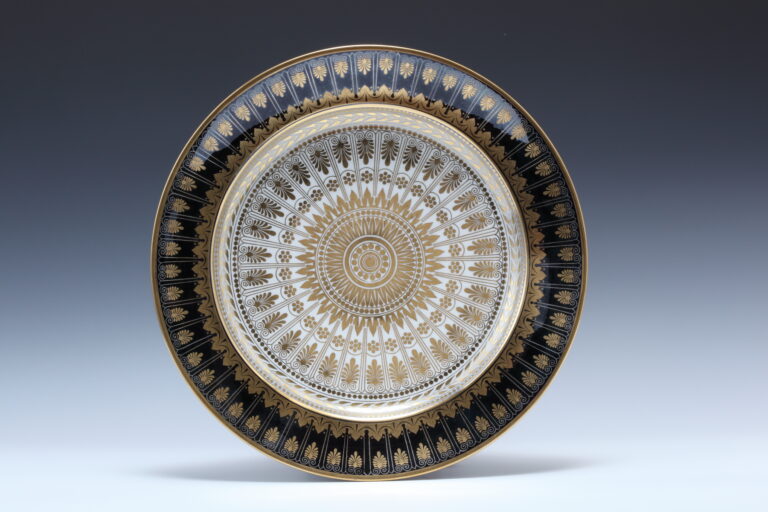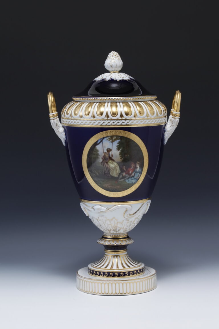 Meissen (マイセン) 1890-1900 ルリ地プラチナと金彩植物文蓋もの