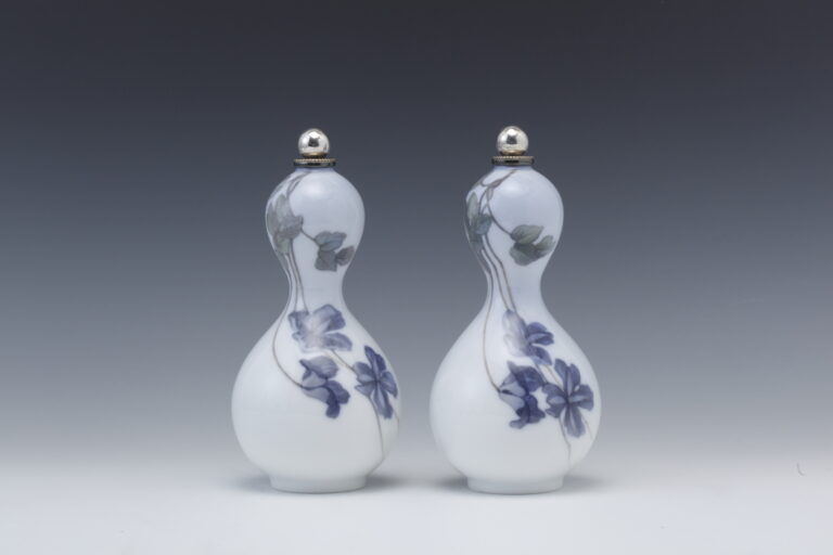 すみれ図 ひょうたん型 シルバーストッパー化粧水ボトル対