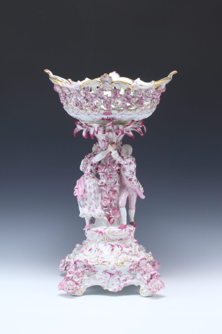 Meissen(マイセン)1880~1900年 エンジ地金彩ワトー風恋人図カップ&ソーサー
