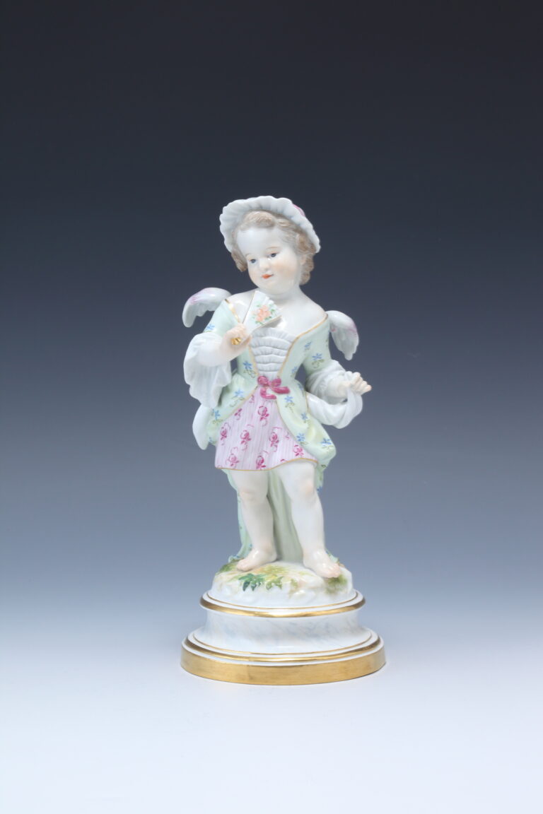 ファンを持ったピンクコスチユームの少女天使像 (マーブル台)