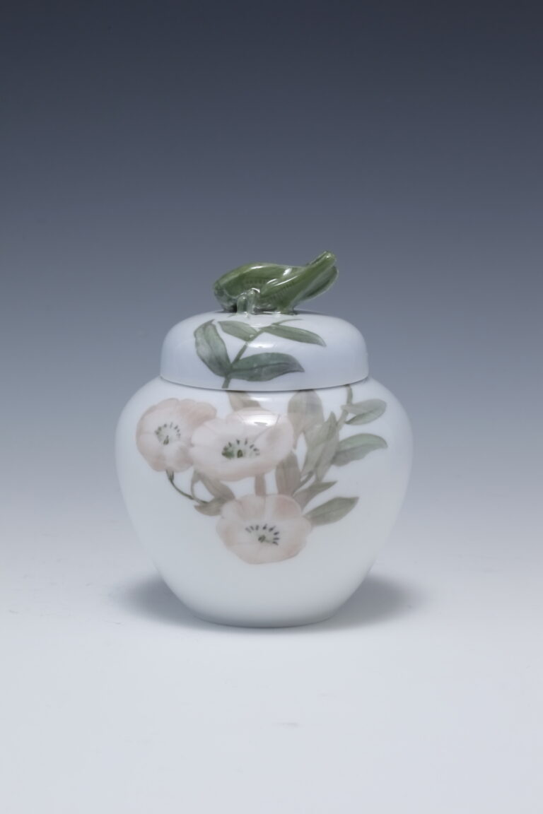 獅子頭両手付 ラビニア図 ふた付飾壷