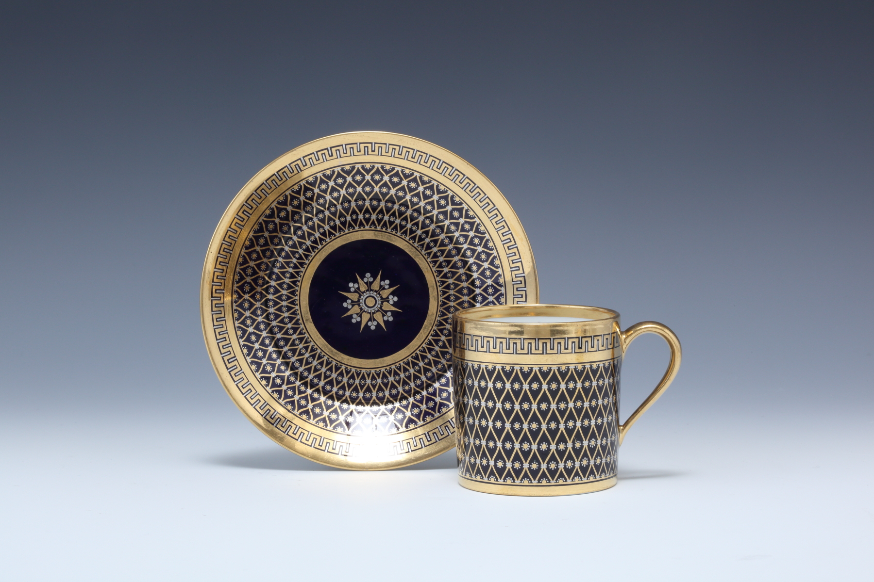 ブルーヌーボー地 金彩パルメットとマーガレット文 カップ&ソーサー