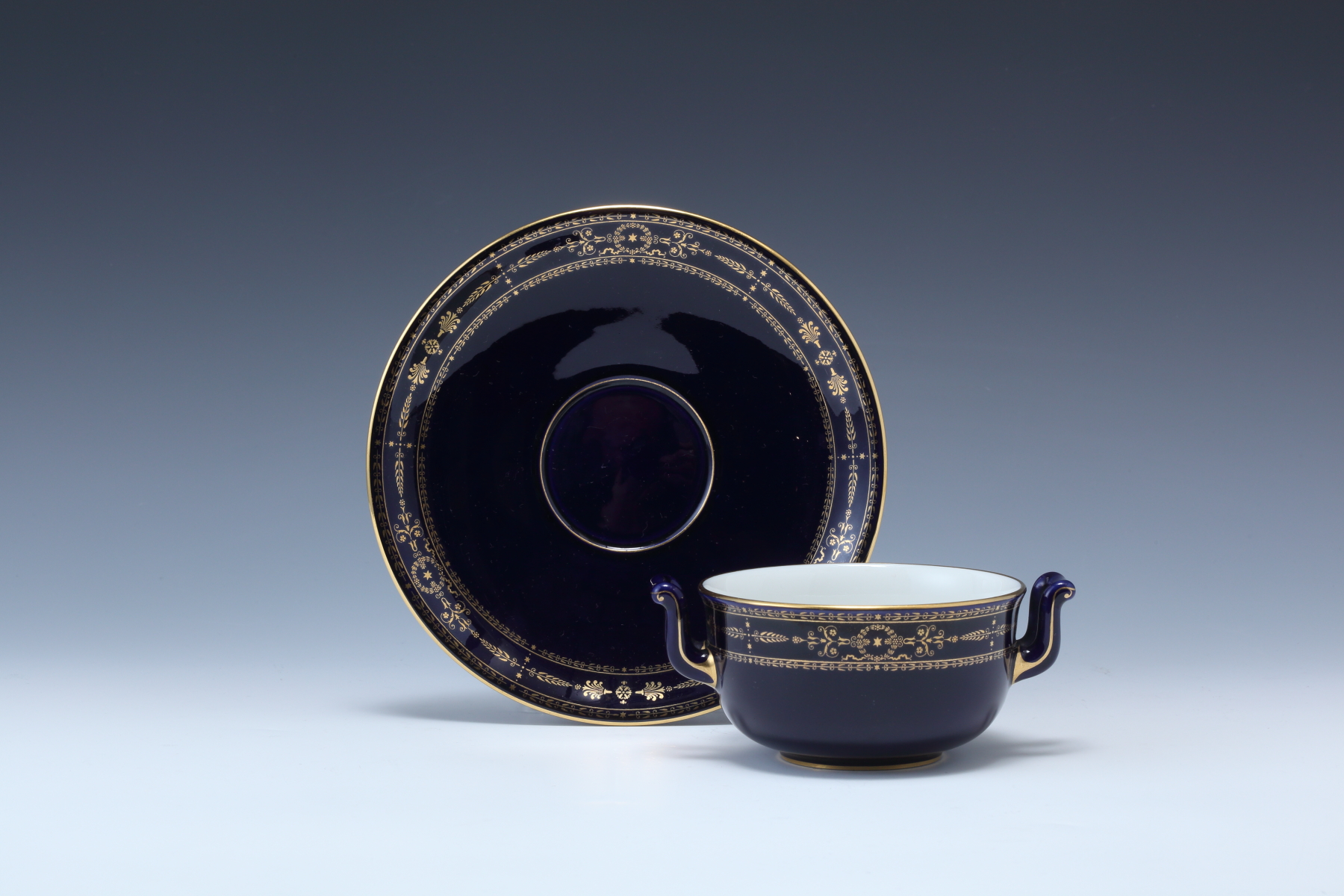 ブルー地金彩 金のフェザー文カップ&ソーサー