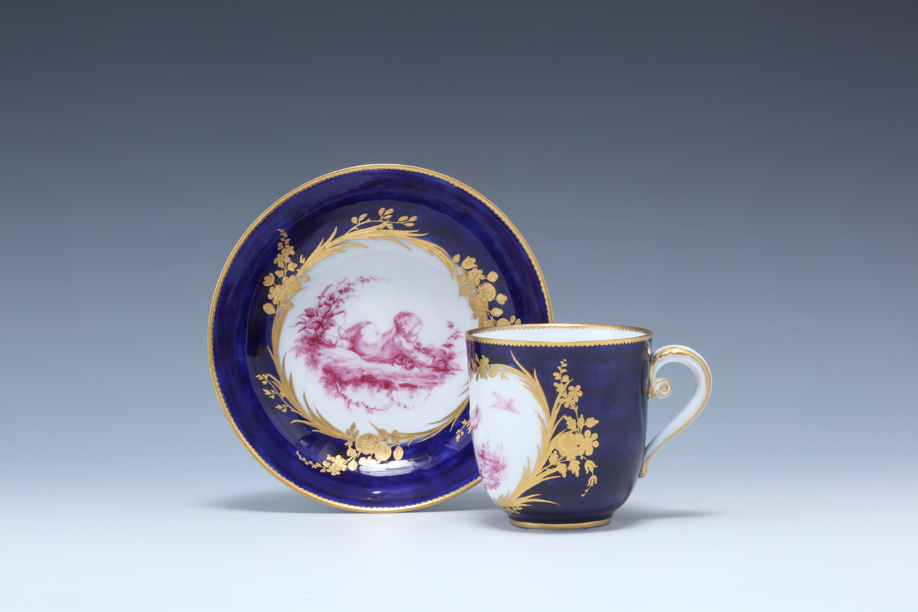 ブルーヌーボー地金彩装飾リトロンカップ&ソーサー