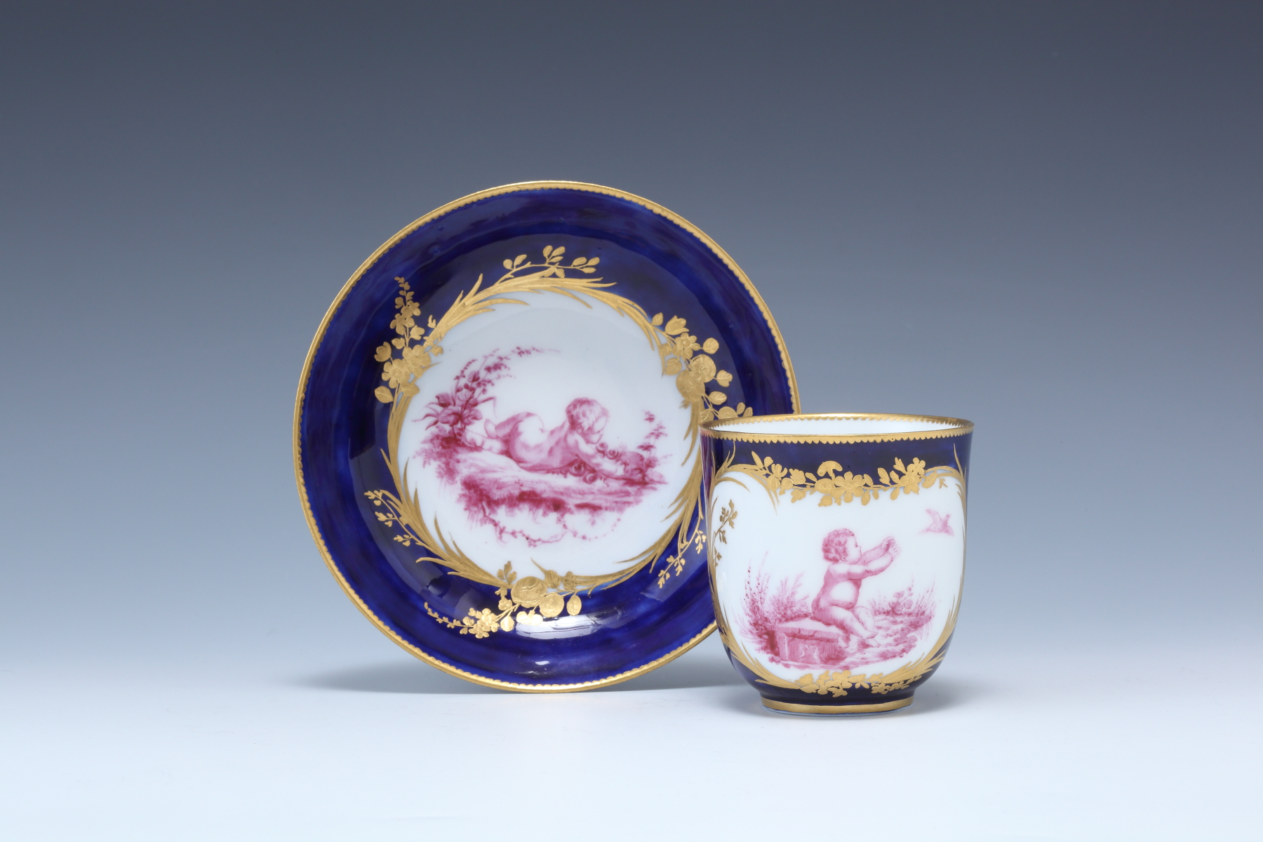ブルーラピ金彩 カマユピンク天使図カップ&ソーサー