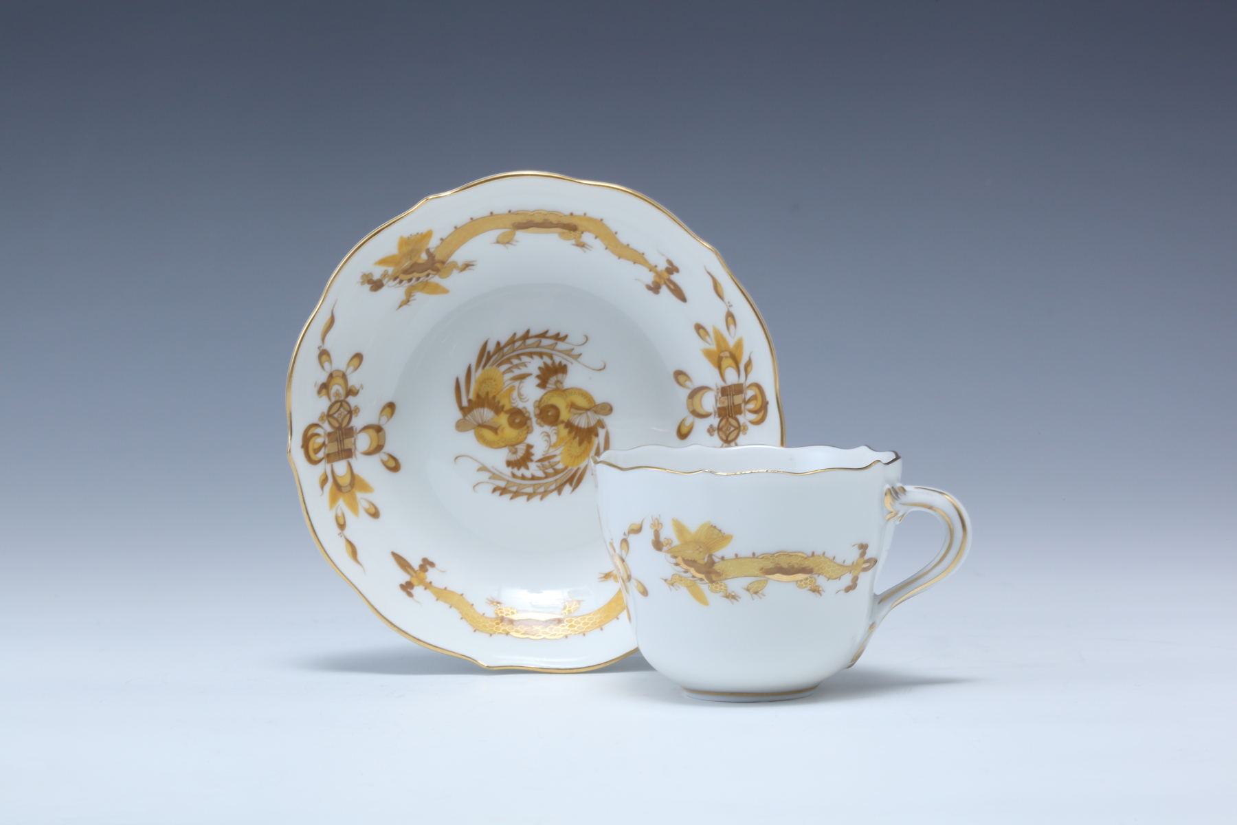 Meissen (マイセン) 1880-1900年 金彩女神と天使図チョコレートカップ&ソーサー