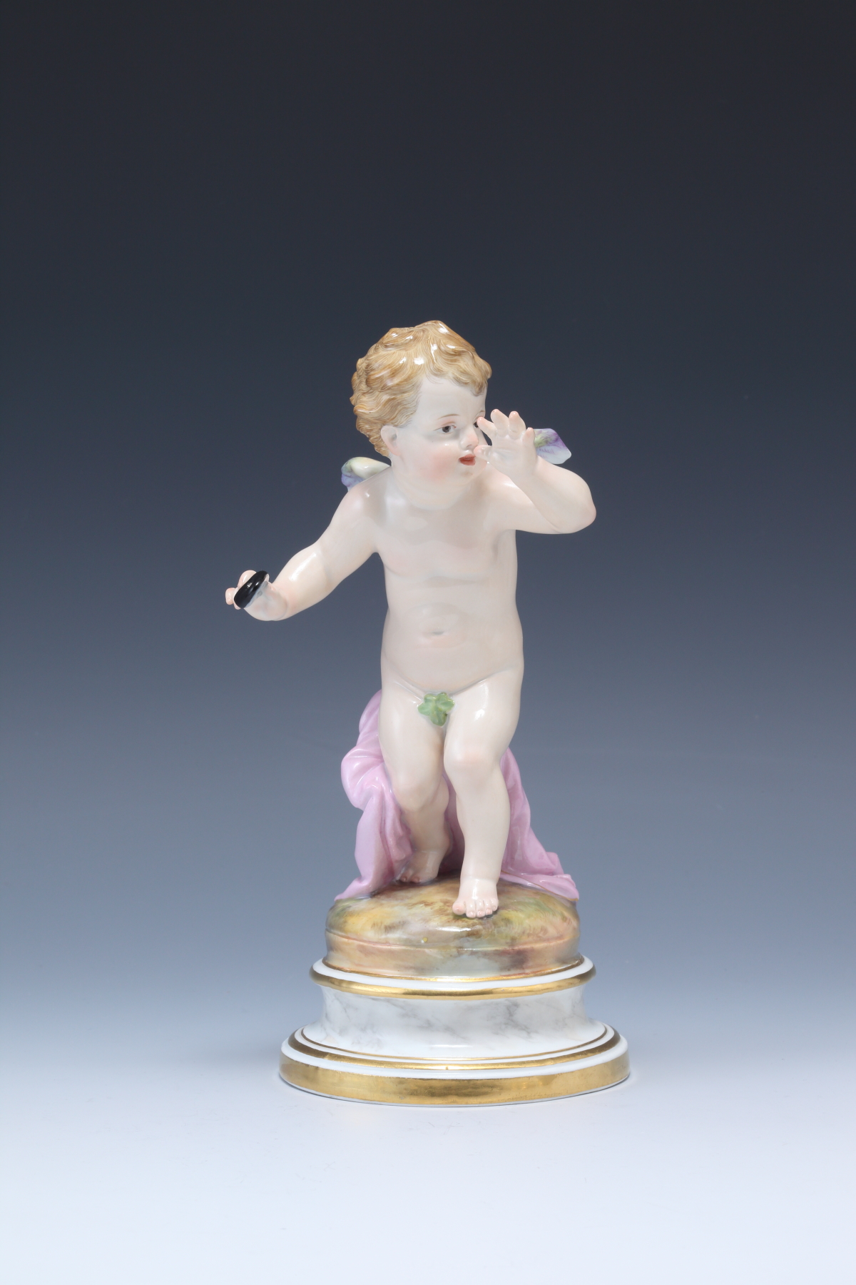 ファンを持ったピンクコスチユームの少女天使像 (マーブル台)