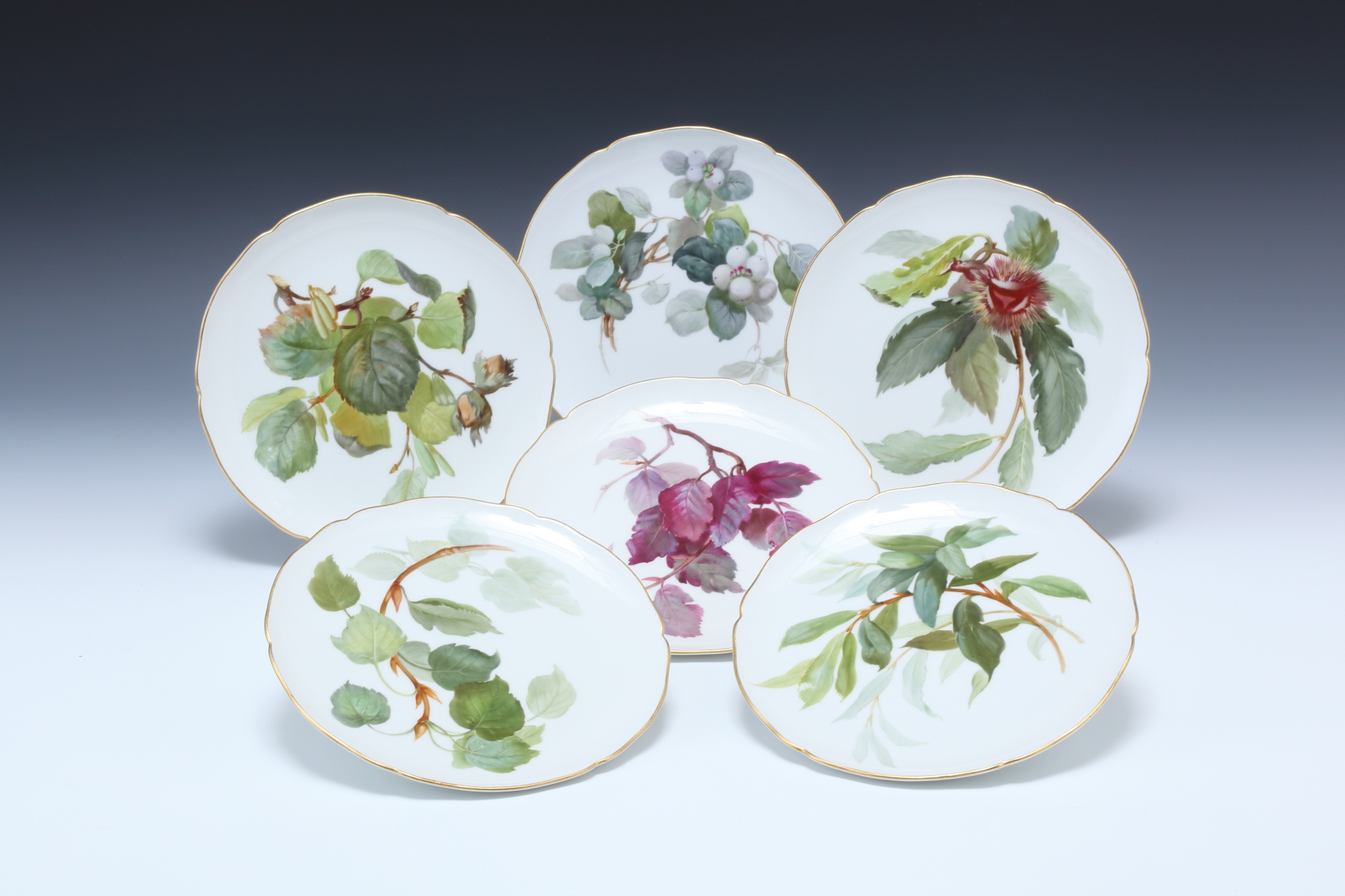 金彩ブルーリボンと花のガーランド 花絵プレイト6枚セット