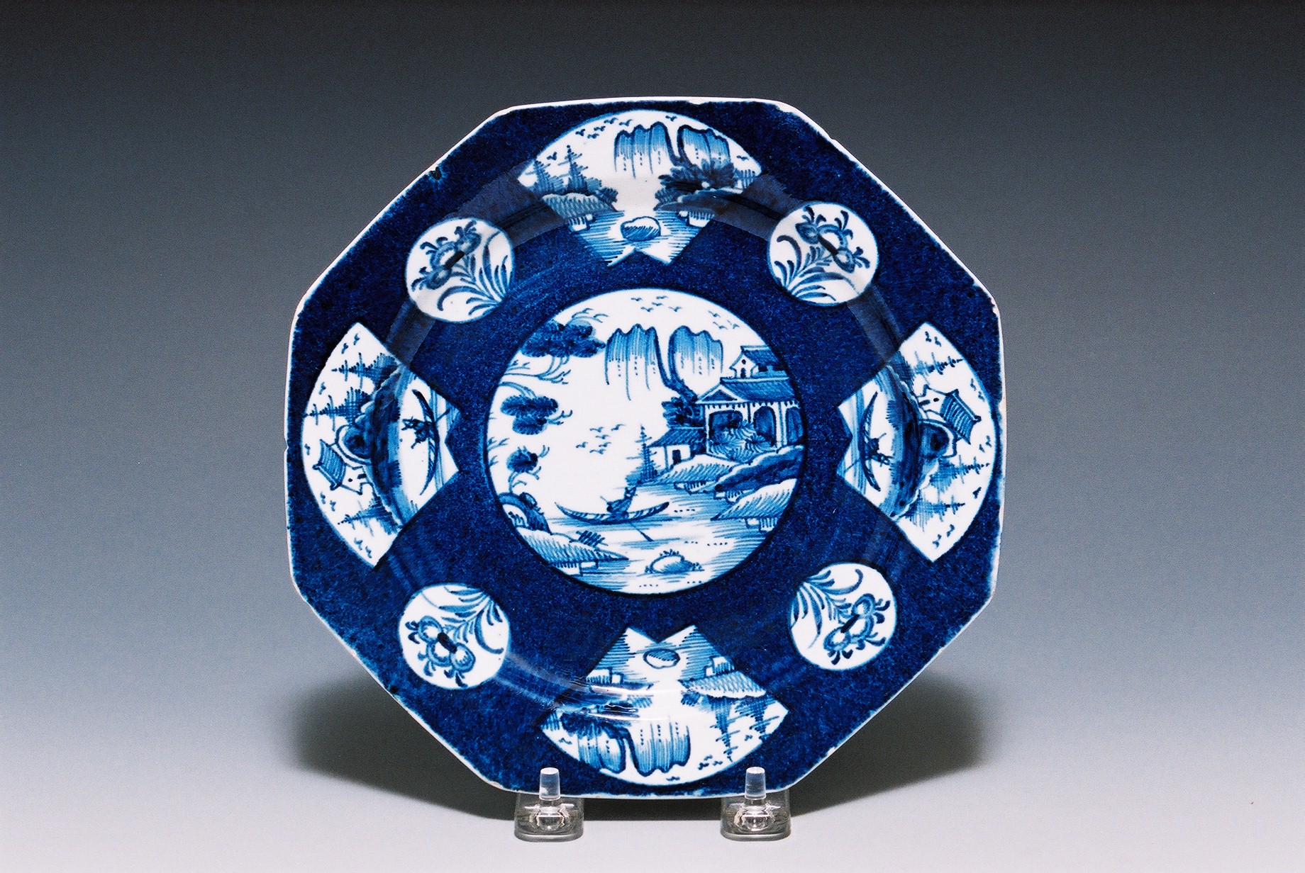 染付中国風景図 八角プレイト