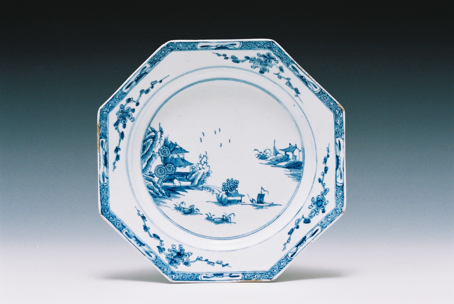 染付中国風景図 八角プレイト