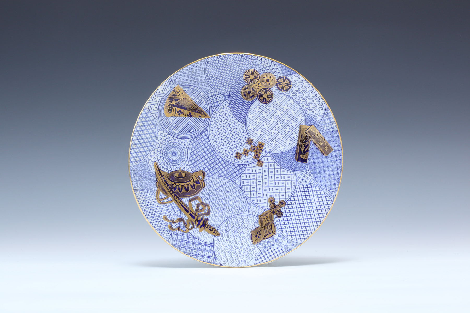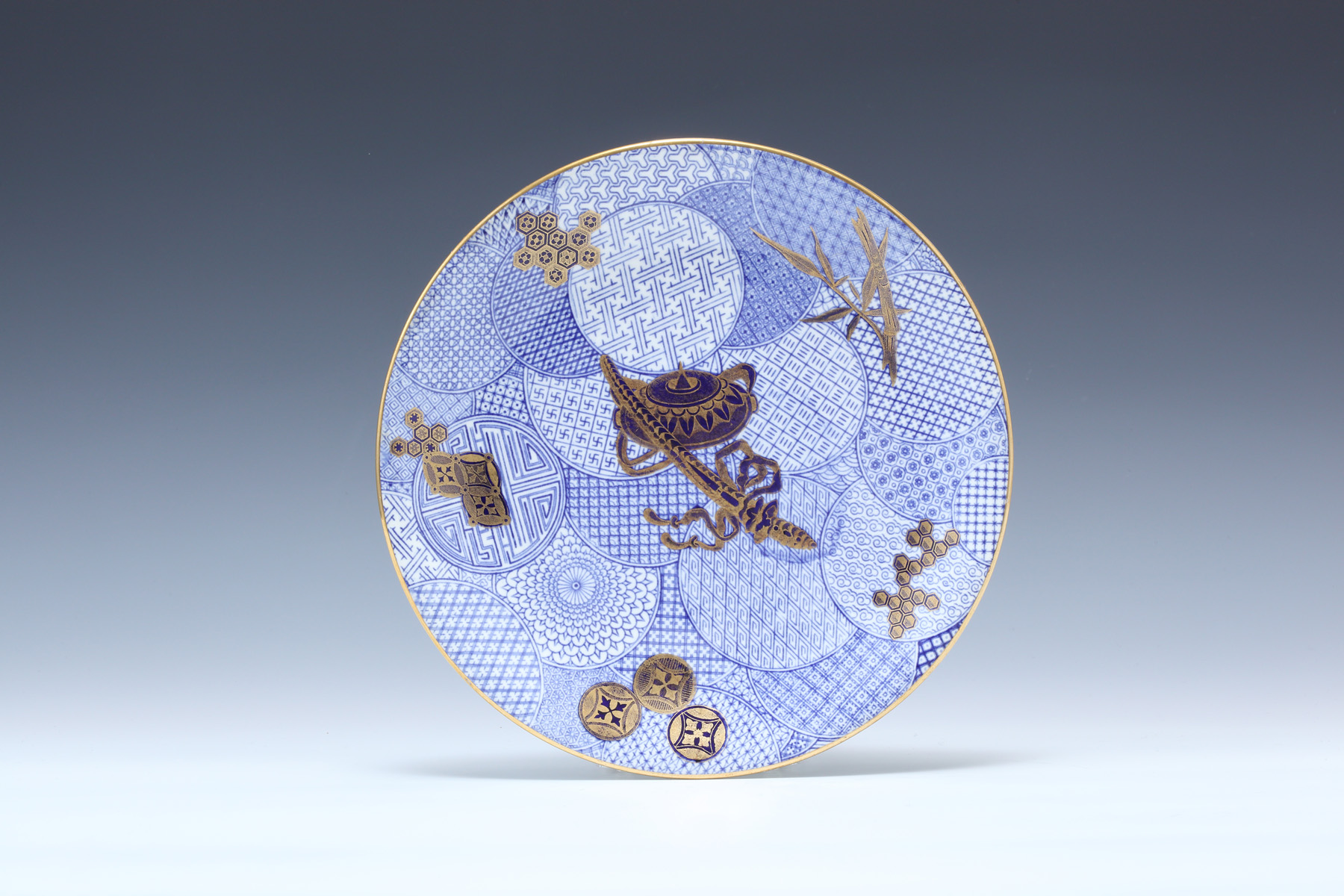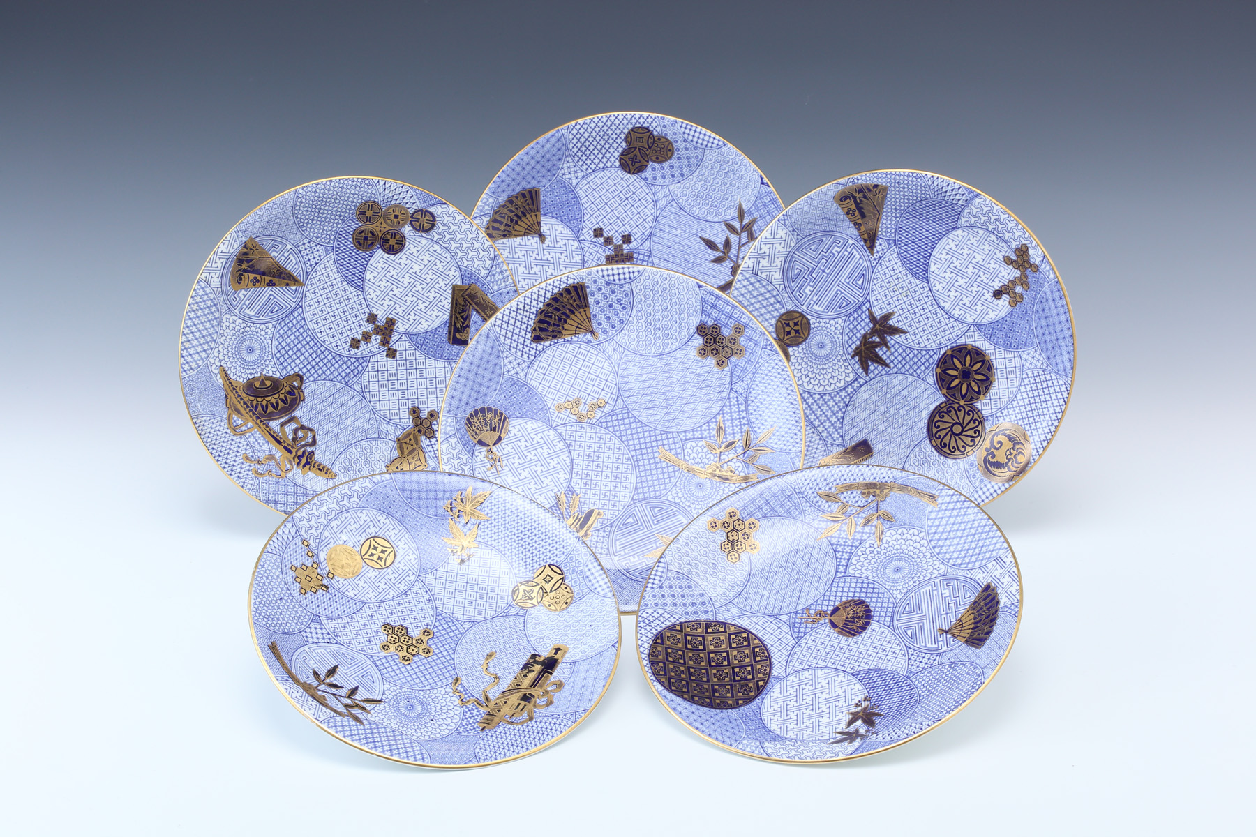 染付手まり地金彩 ジャポニズム図柄散らしプレイト 6枚セット