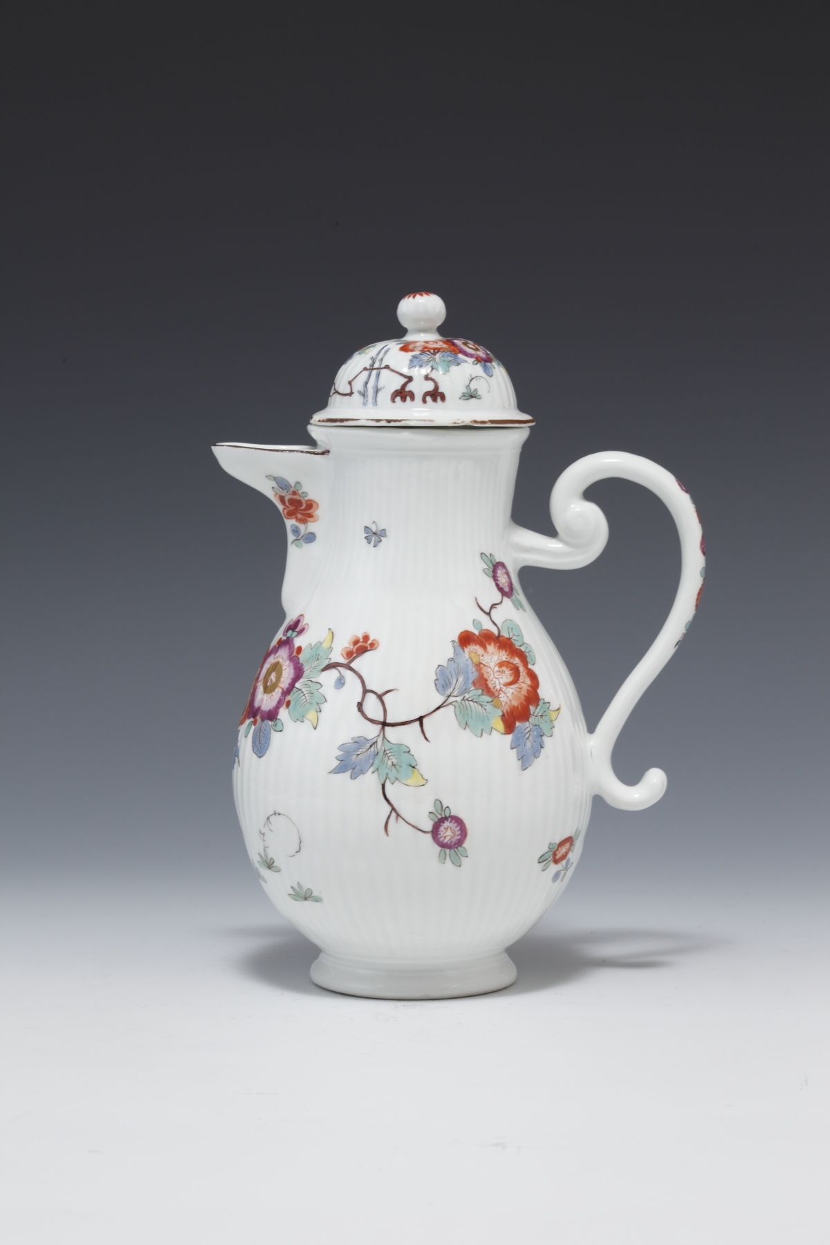 柿右衛門写し 竹にボタン図 シノギ地コーヒーポット蓋付