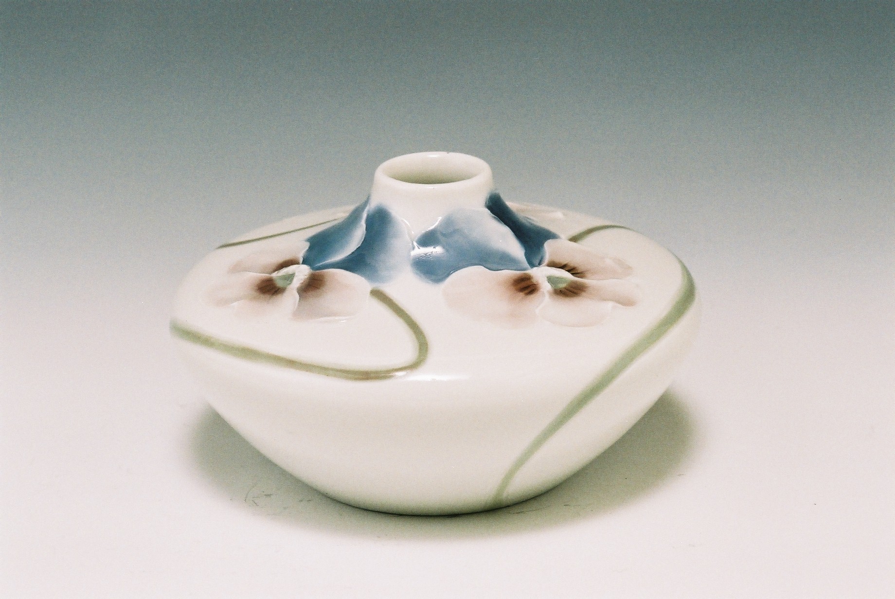 ブラッシュアイボリー 浮彫りすみれ図 ポージー花瓶