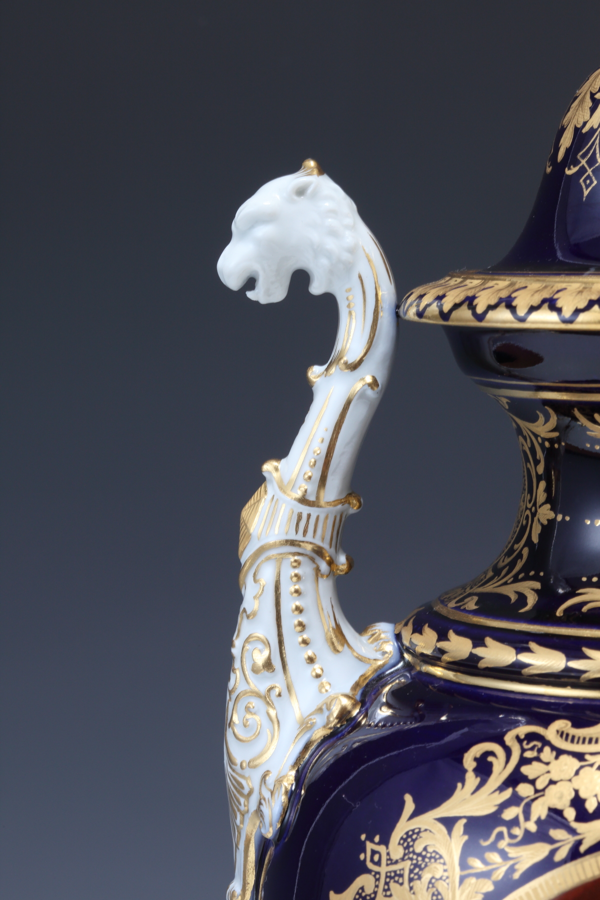 Meissen (マイセン) 1890-1900 ルリ地プラチナと金彩植物文蓋もの