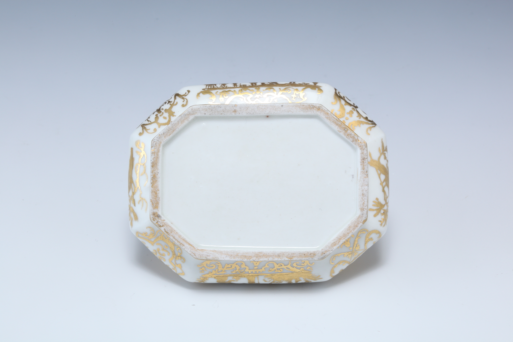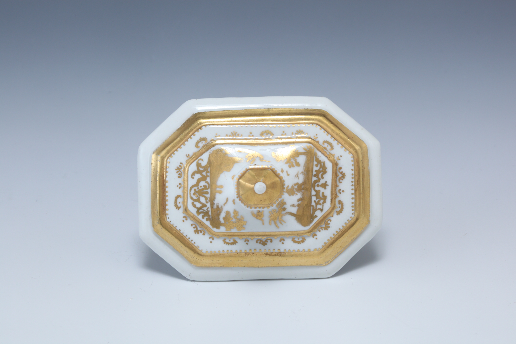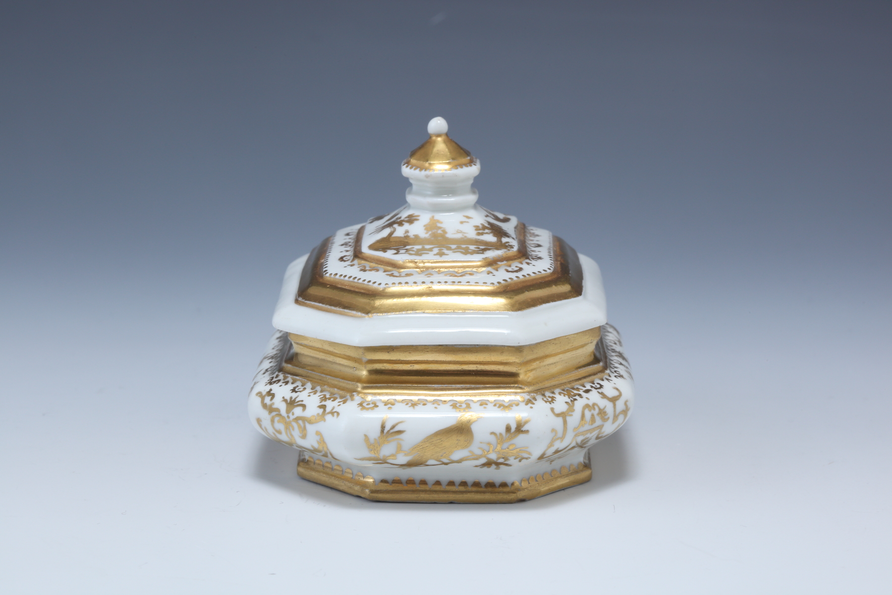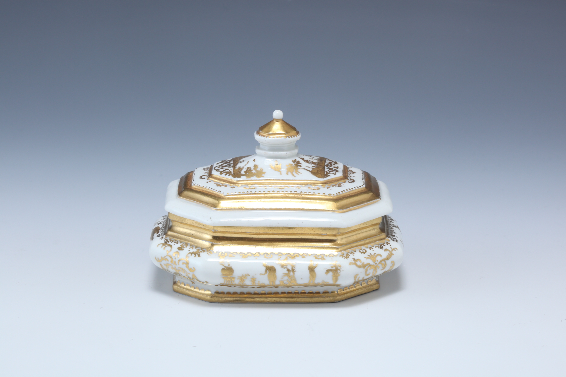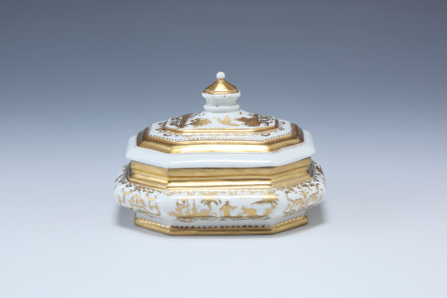 白金長四角形シノワズリー人物図蓋付シュガーポット