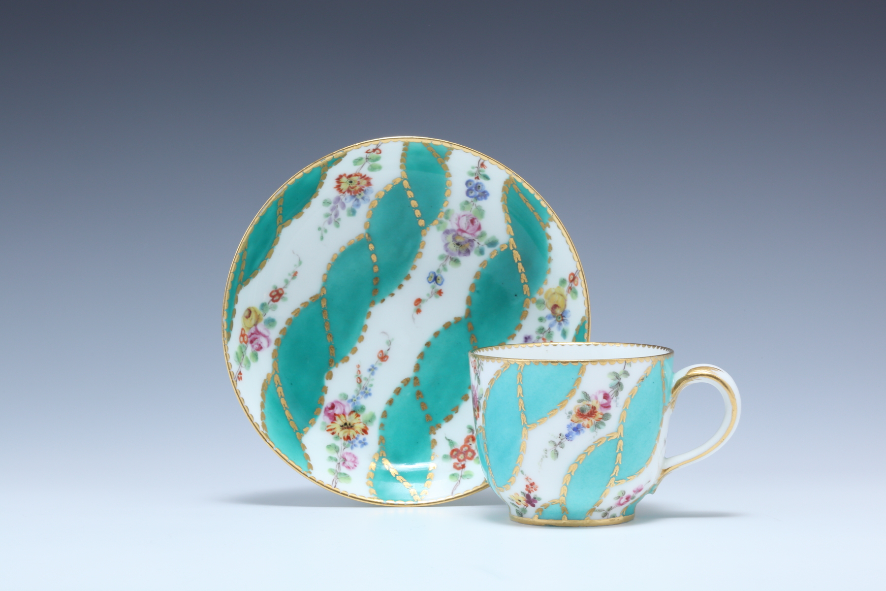 ナポレオングリーン地 金とプラチナ装飾 カップ&ソーサー