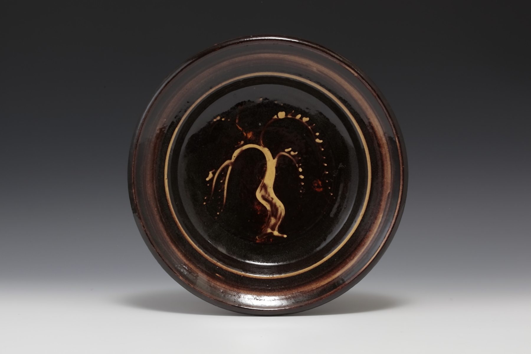 赤茶色釉 浮彫り枝に果実文 蓋付シェイプボトル