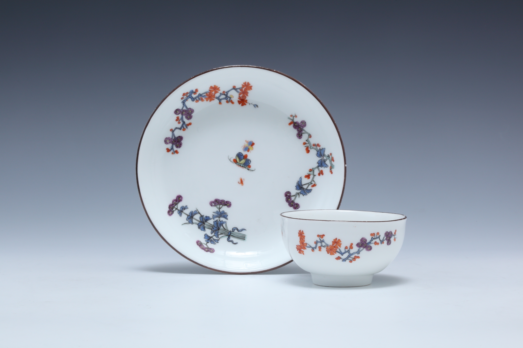 ブルーボーダー 花絵カップ&ソーサー