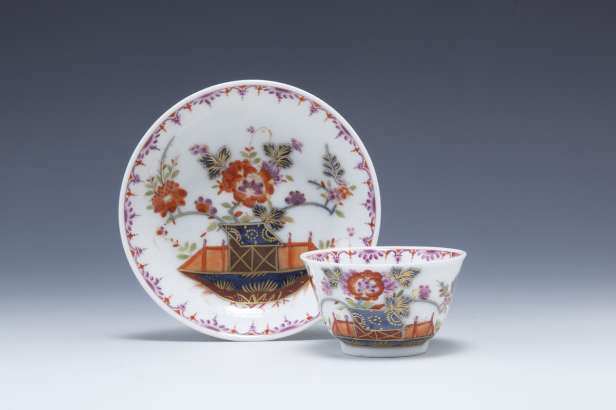 金彩カルトゥーシュ 港湾風景図ティーカップ&ソーサー