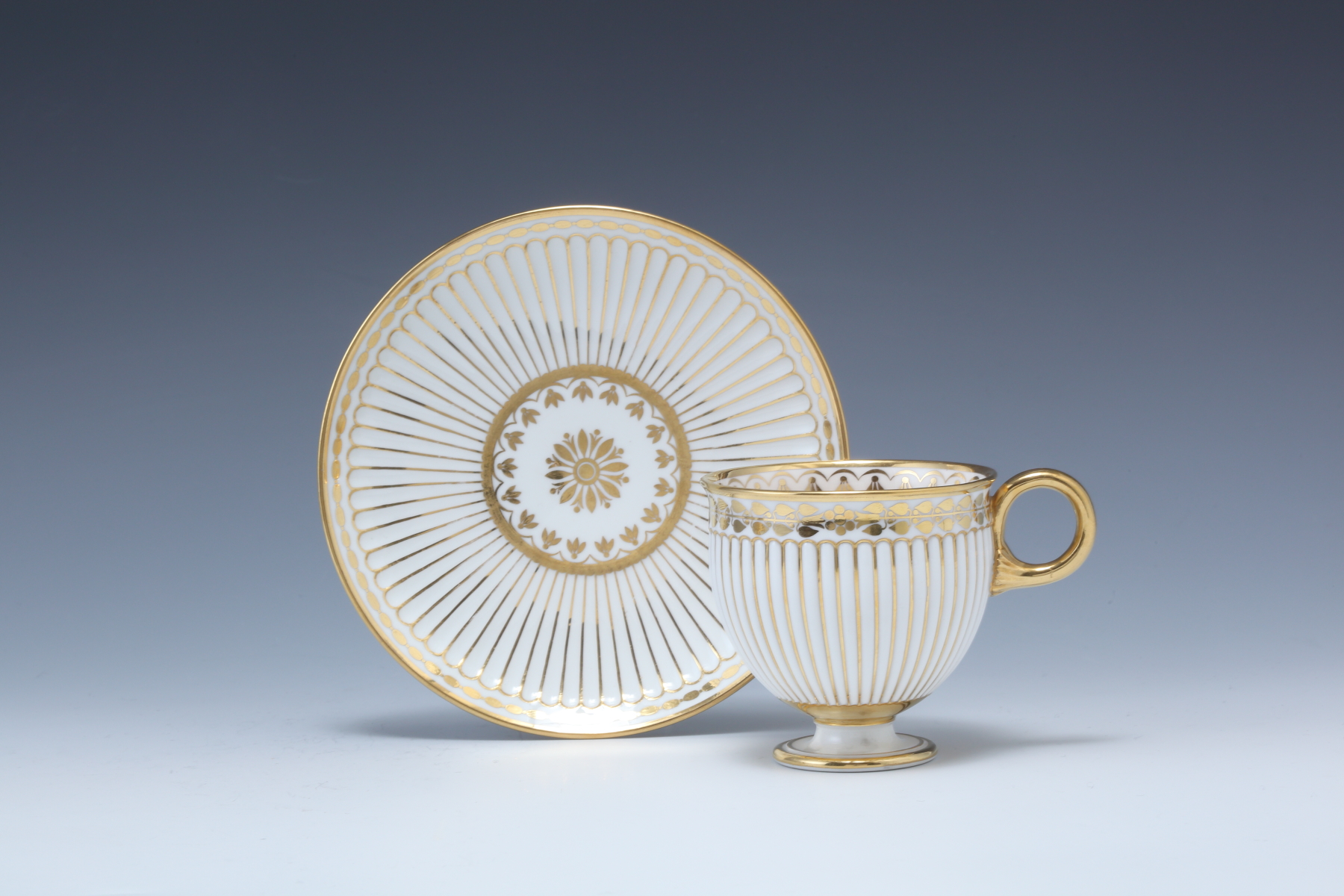 ナポレオングリーン地 金とプラチナ装飾 カップ&ソーサー