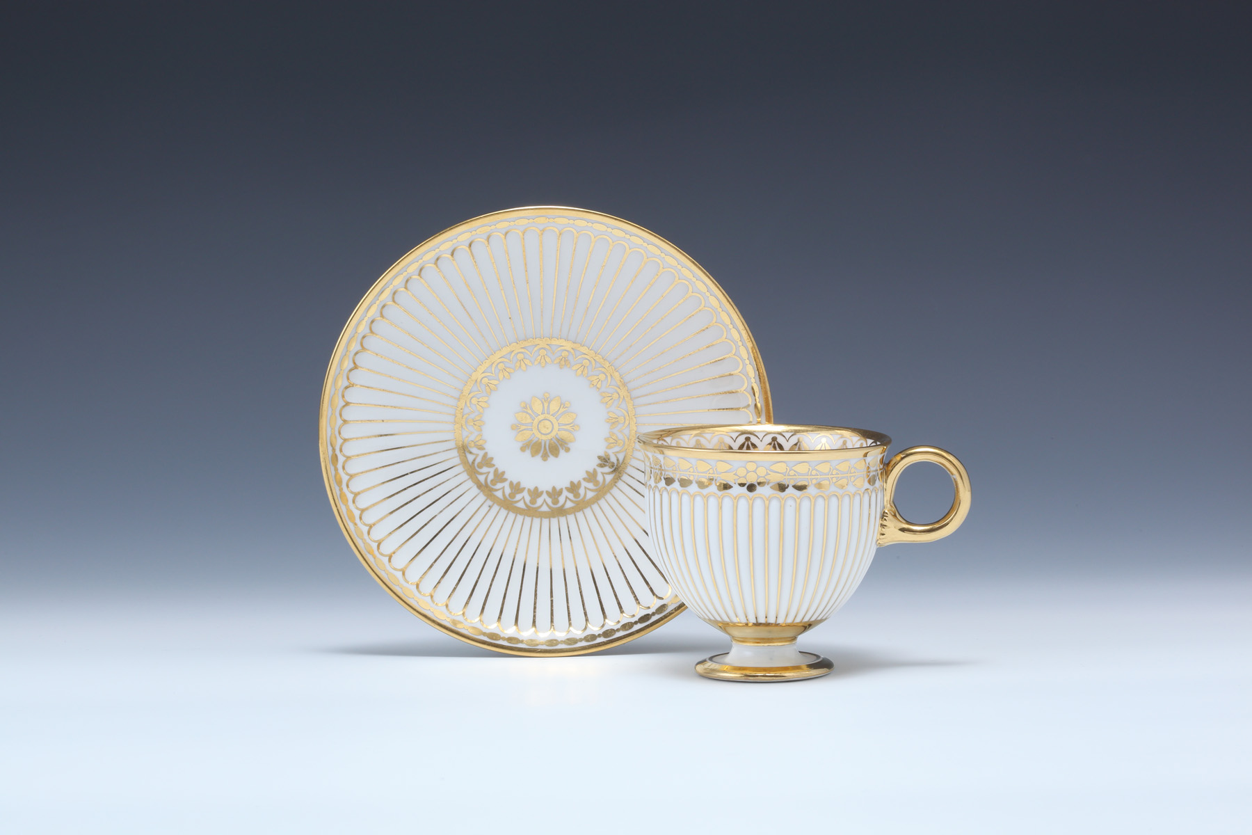 ナポレオングリーン地 金とプラチナ装飾 カップ&ソーサー