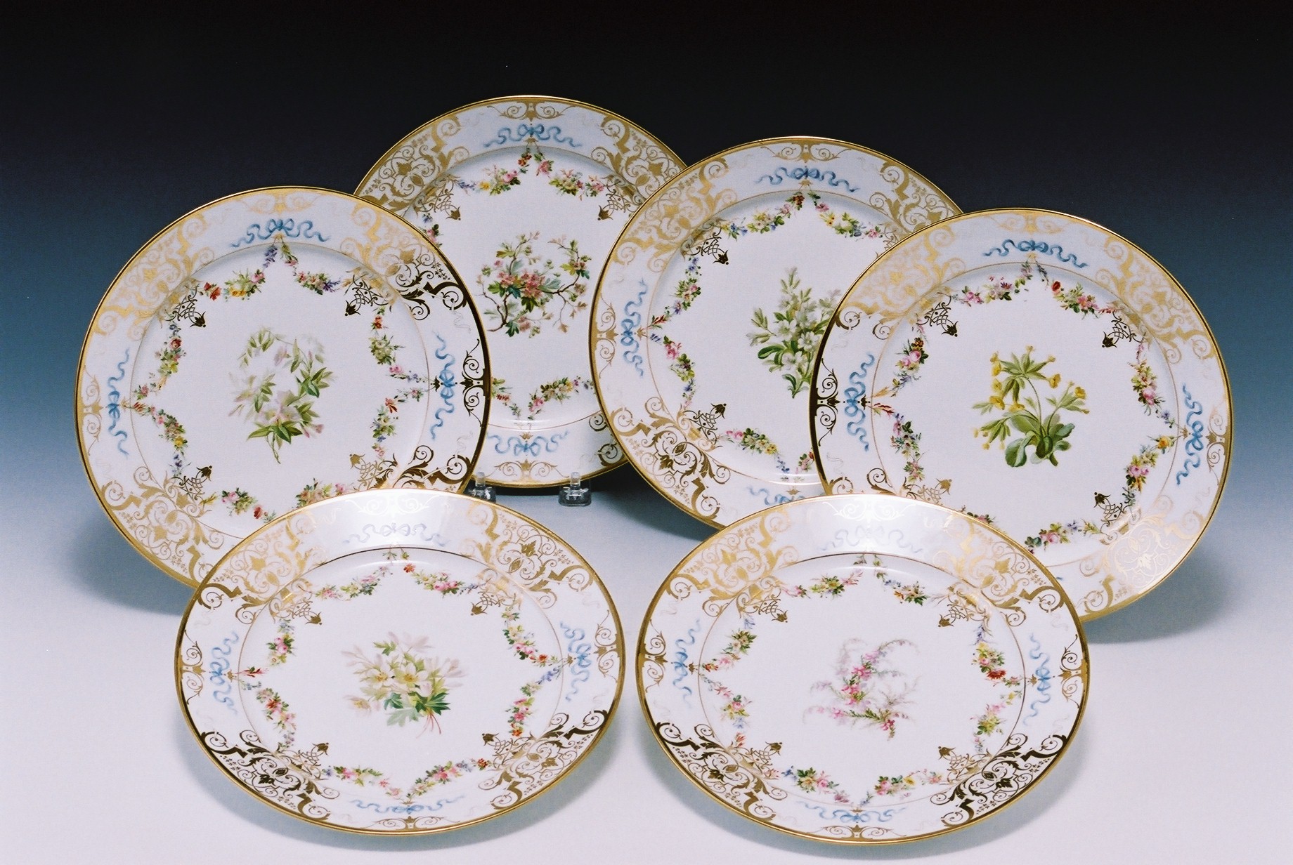 金彩ブルーリボンと花のガーランド 花絵プレイト6枚セット
