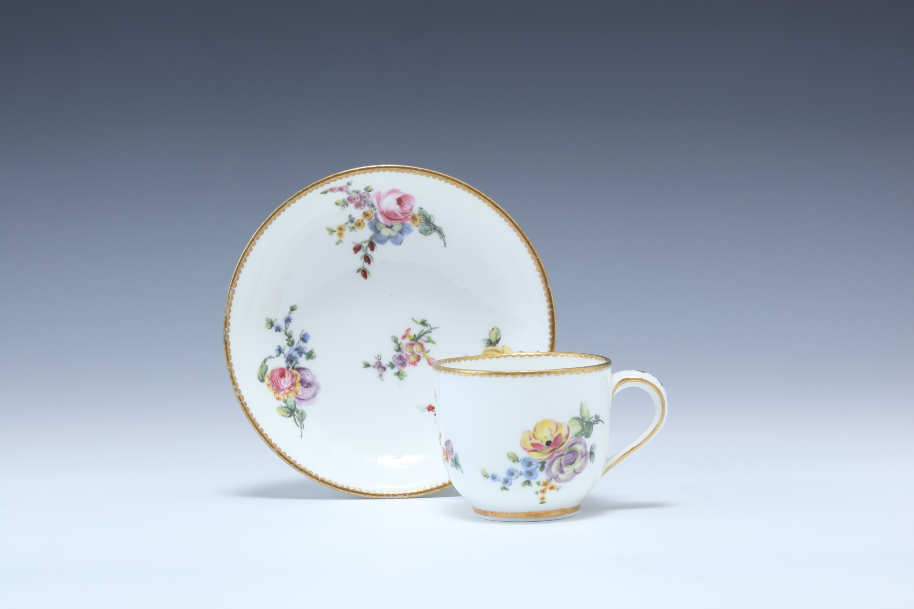 Meissen(マイセン)1890-1910 金彩ボーダーピンクバラ絵スワンハンドルカップ&ソーサー