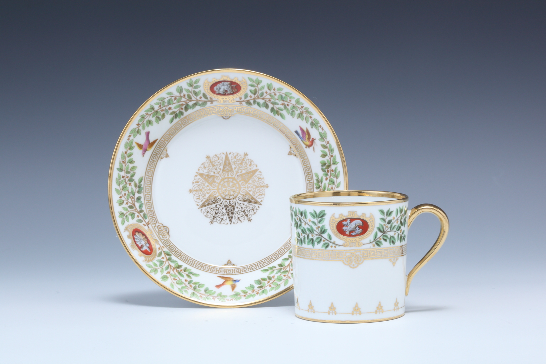 ナポレオングリーン地 金とプラチナ装飾 カップ&ソーサー
