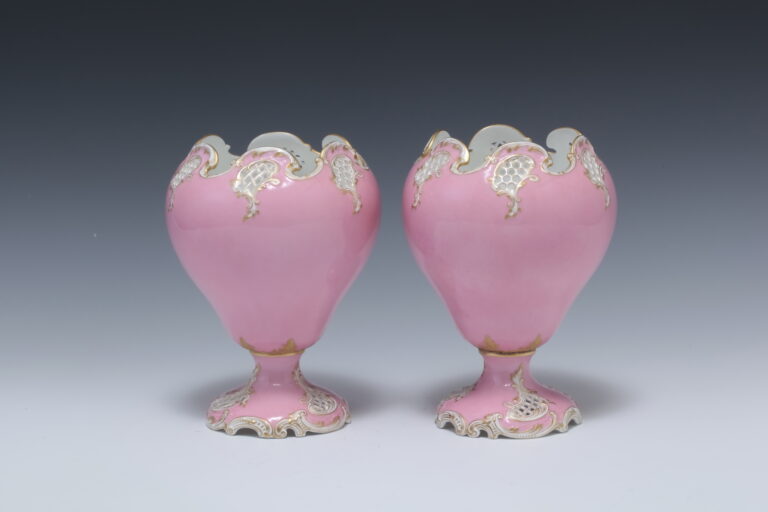 透かし彫りロココシェイプピンク花瓶対