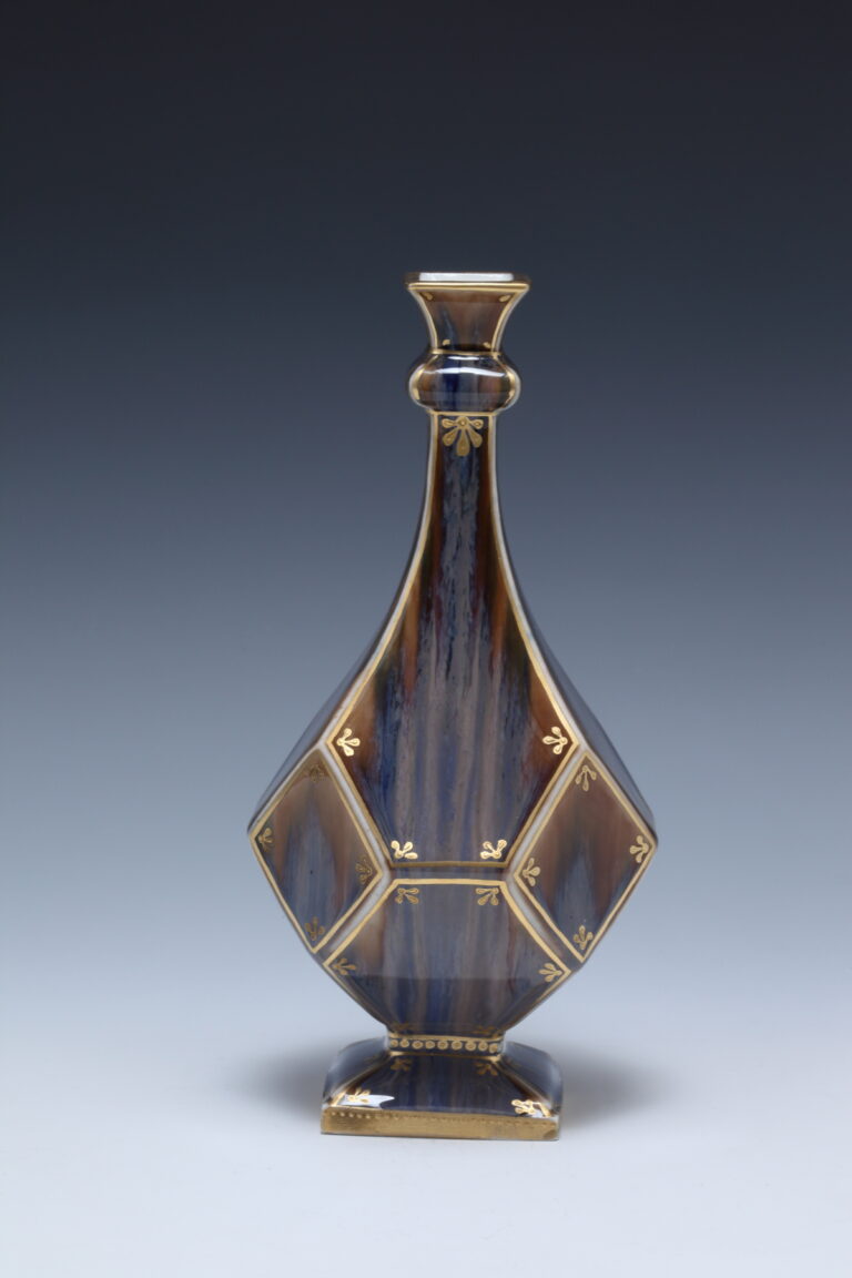 金とブルー地ヴァインリーフ文ハイループカップ&ソーサー