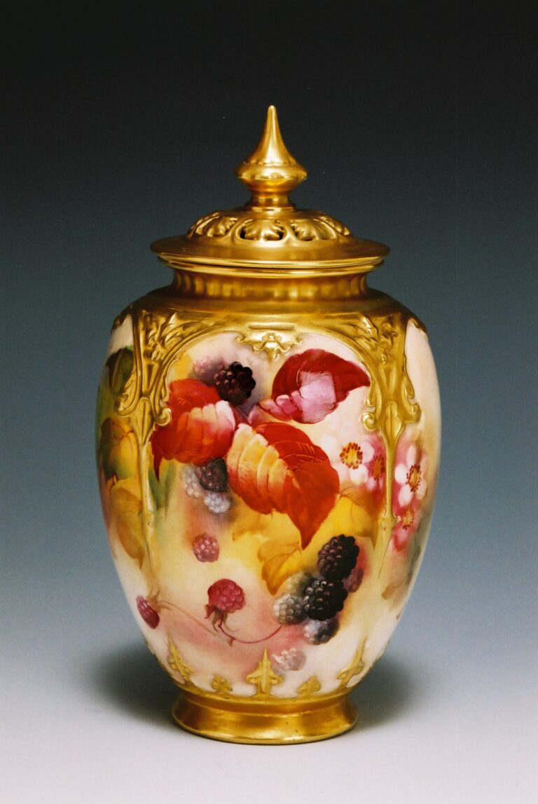 金彩透かし彫りカバー ブラックベリー図 ポプリポット