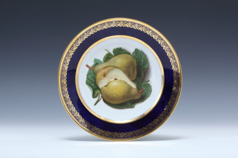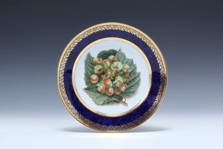 ブルーラピ金彩ボーダー 果実絵プレイト