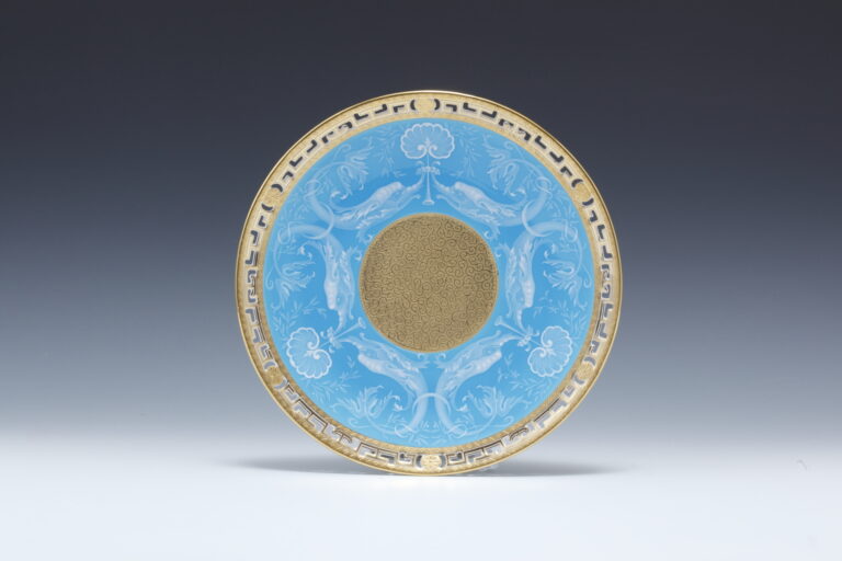 トルコ石ブルー地 ホワイトエナメル ドルフィン図プレイト