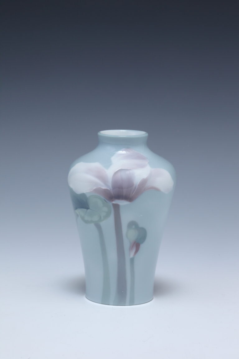 ブルーグレイ地シクラメン図 小花瓶
