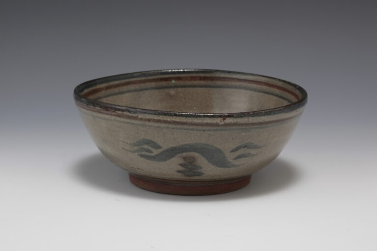茶色地紺のパターン鉢